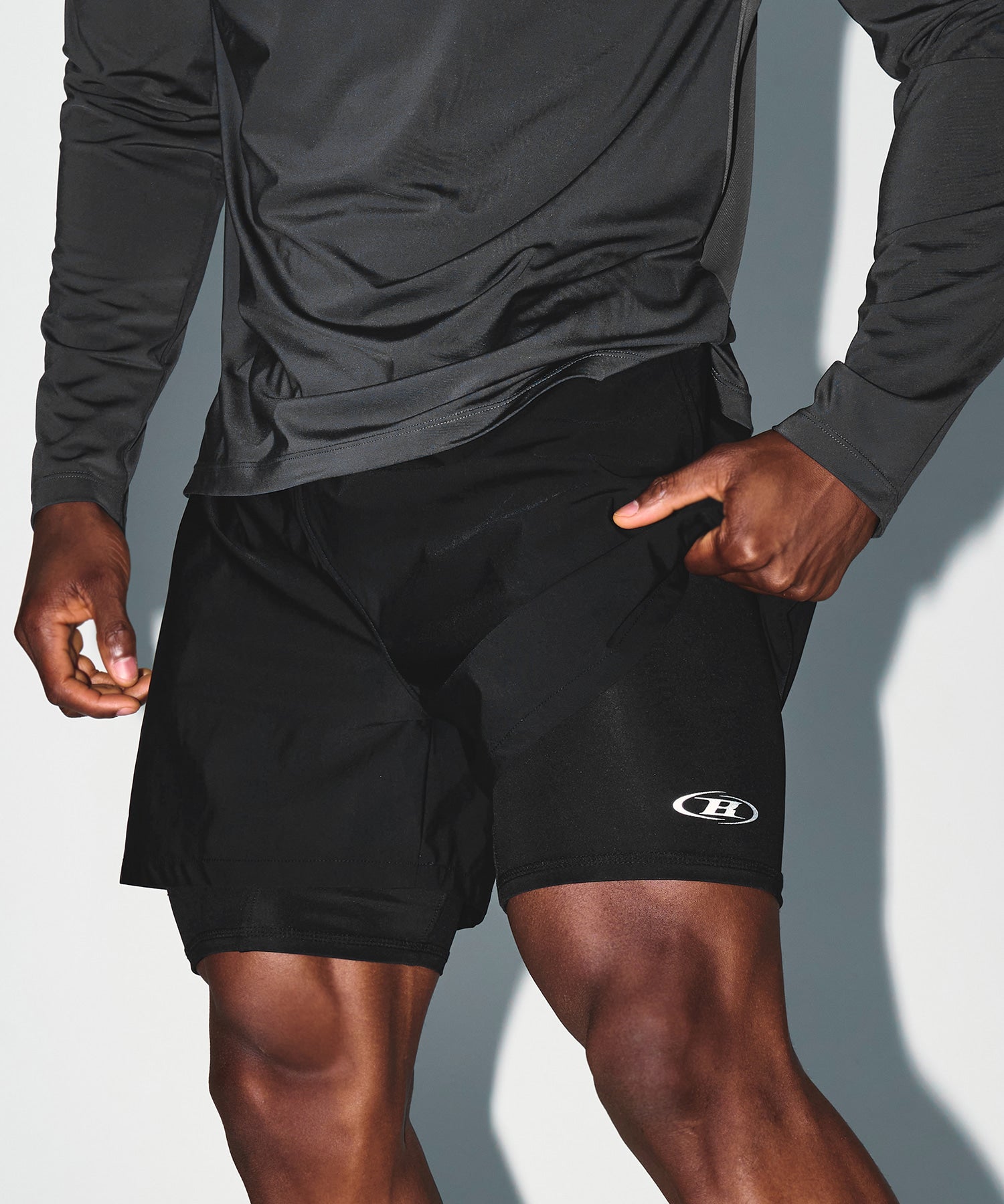 【予約販売:ご注文より1~3週間後に発送予定】BRN OUTBAND 2 IN 1 SQUAT SHORTS [BLACK]