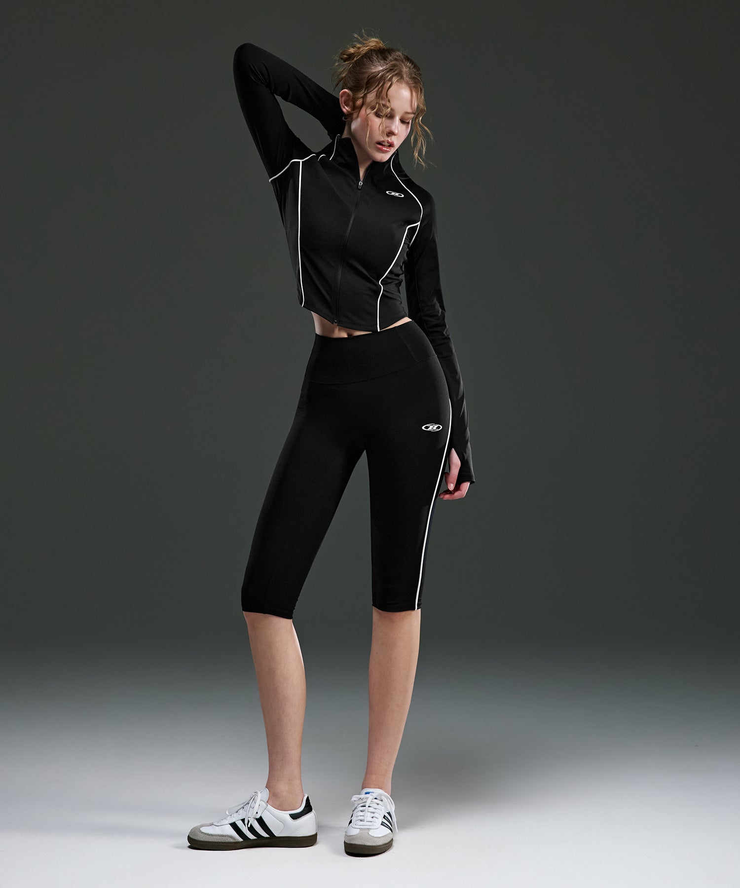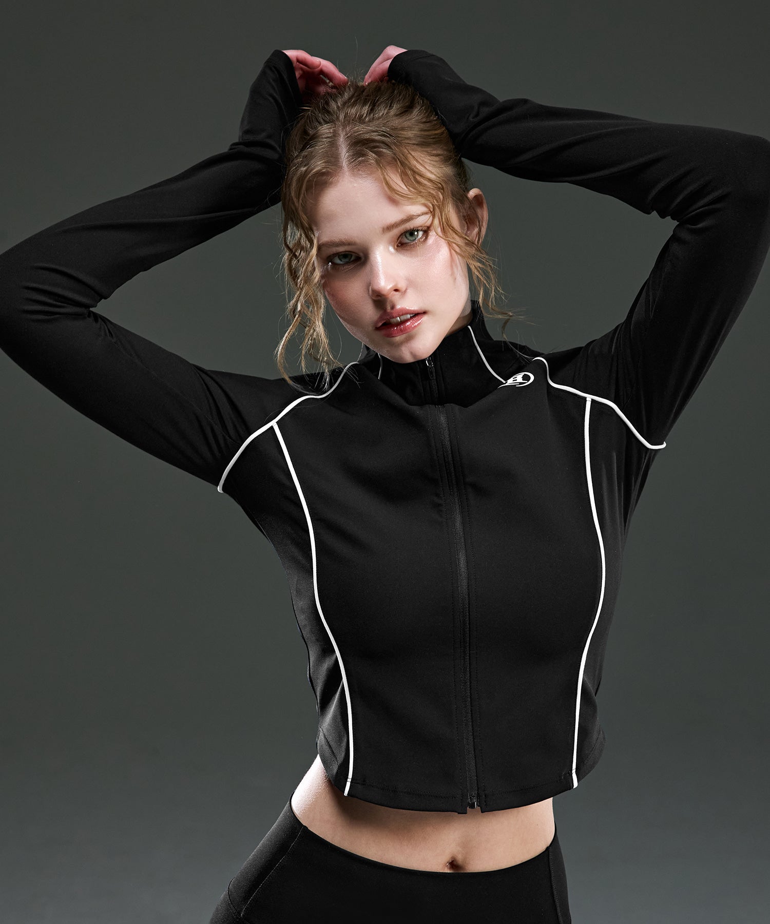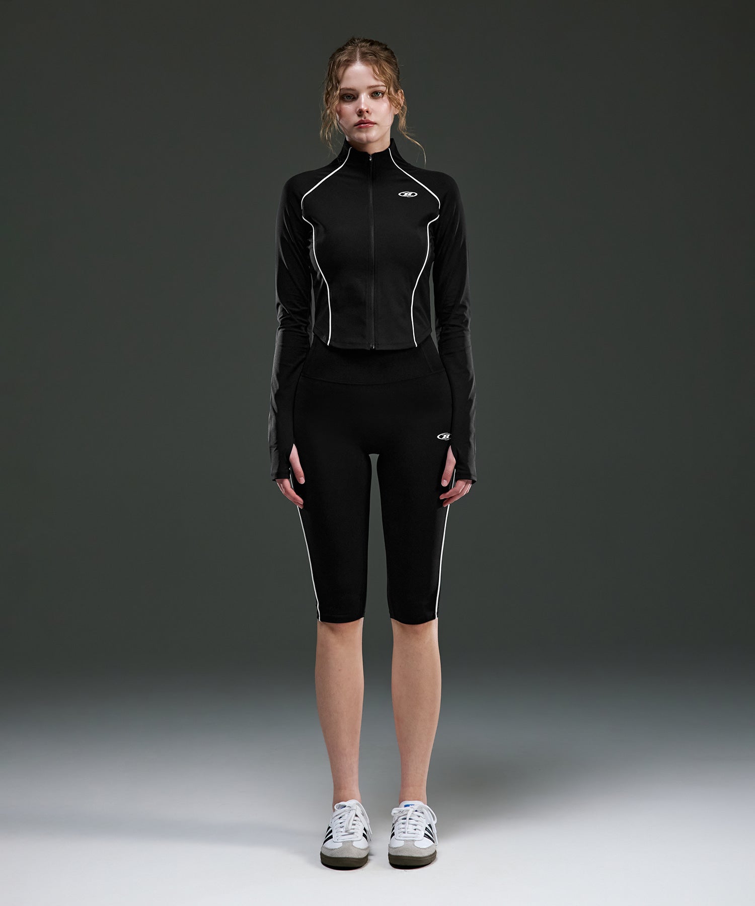 【予約販売:ご注文より1~3週間後に発送予定】W SYMBOL B PIPING FULL ZIP-UP JACKET [BLACK]